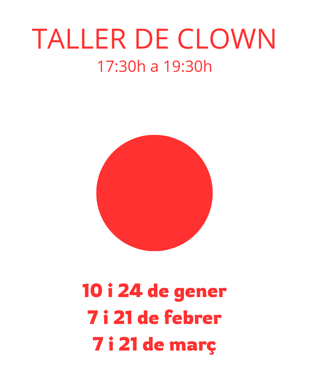 INICI EL CLOWN: “FER EL PALLASSO“MÉS ENLLÀ DE L’ENTRETENIMENT Allibera’t. Rebel·la’t. Desaprèn. Reconstrueix-te. AGENDA Més informació TALLERS DE CLOWN PRÒXIM TALLER25 d’octubre Més informació. NOU ESPECTACLE BLOG Lectures breus.Subscriu-te per rebre les entrades noves directament al teu correu 🙂 Dois / Massiel Llegeix 14 Juny, 2025 Dois / Ivar, el meu amic Llegeix 29 Abril, 2025 Dois / La tutora Llegeix 6 Abril, 202511 Abril, 2025 Compártelo: Share on X (S'obre en una nova finestra) X Comparteix al Facebook (S'obre en una nova finestra) Facebook